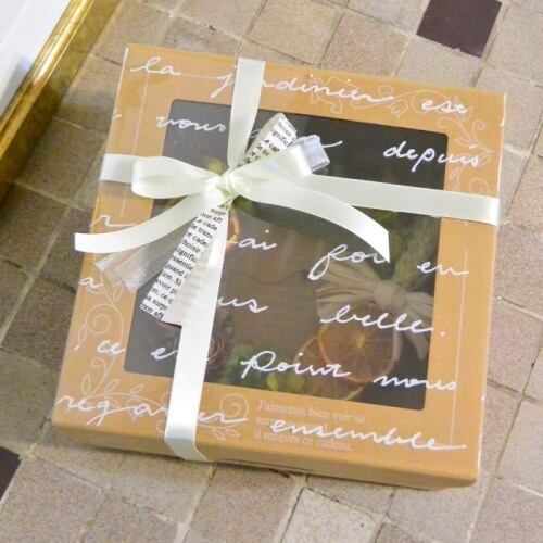 リースボックスに入れて、ラッピングをしてお届けいたします。